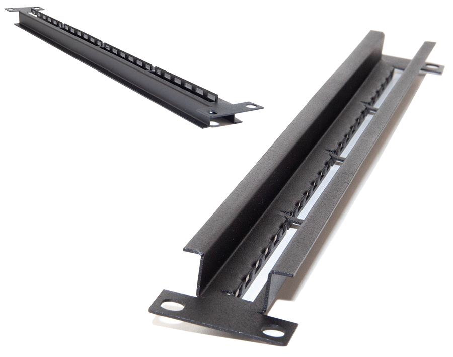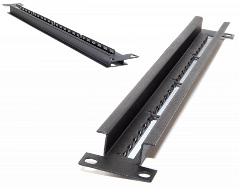 Имеют двойную перфорацию, образуя горизонтальный кабельный менеджмент. Обладают окном для ввода кабеля